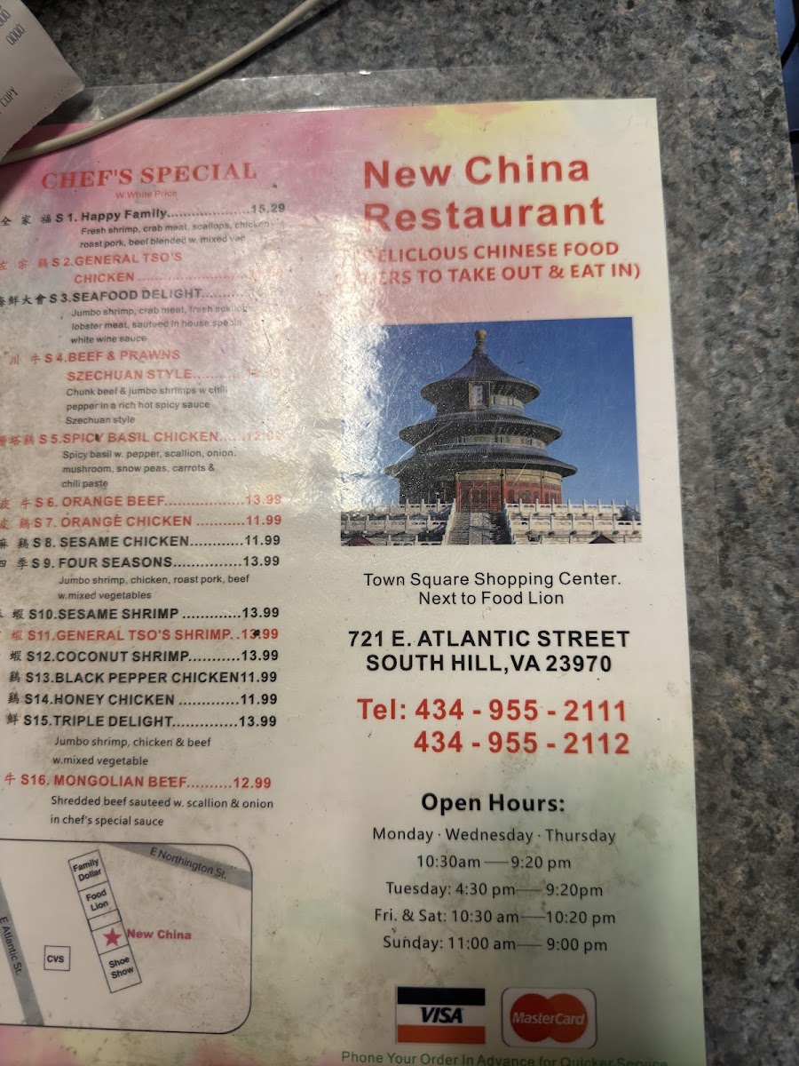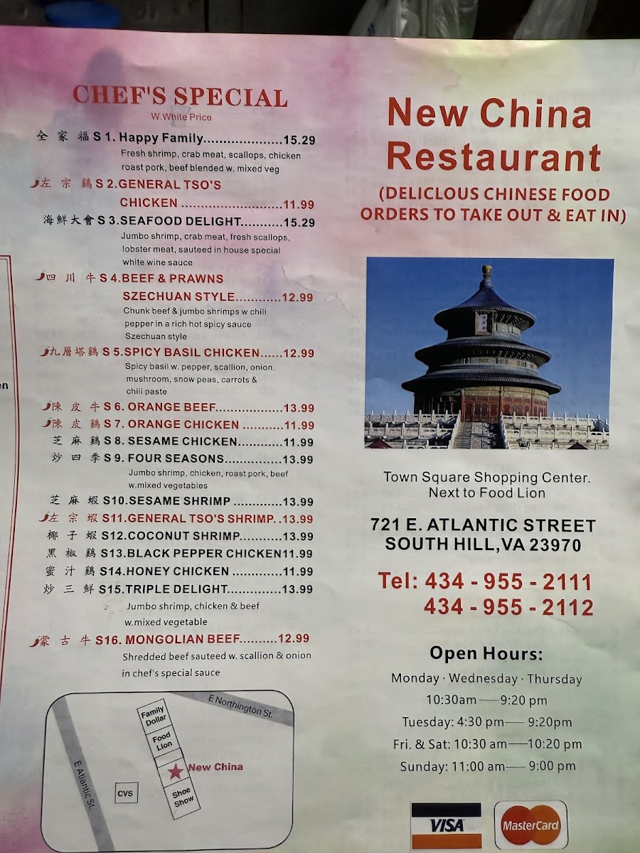 Welcome to New China Restaurant South Hill, a delightful culinary gem nestled in the heart of South Hill, Virginia. Located at 721 E Atlantic St, this restaurant offers a cozy atmosphere where authentic Chinese flavors take center stage. With its affordable prices and delicious dishes, it’s no surprise that the eatery has garnered a loyal following among locals.